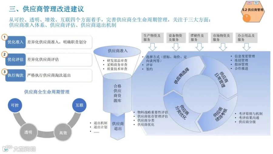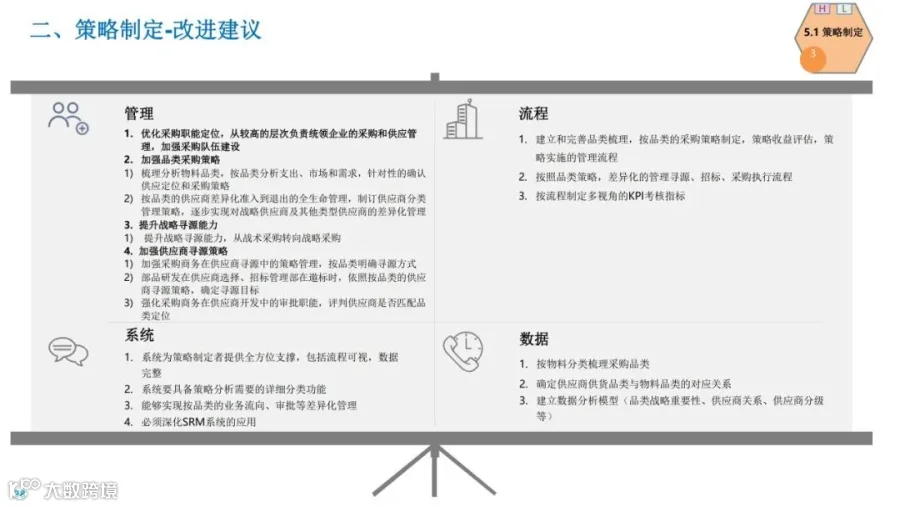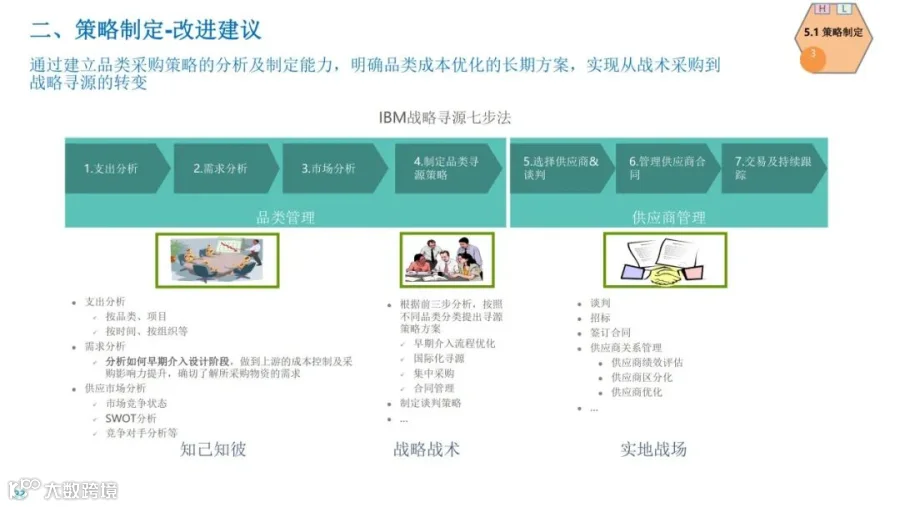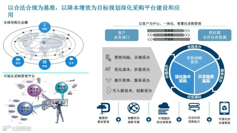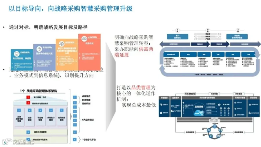 1、明确向战略采购智慧采购管理转型: 采办职能向供需两端延展