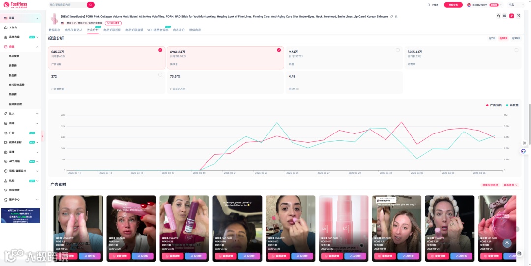 FastMoss 这次上线的 商品详情页-投流分析模块,不只是多了一个数据表,而是把“单品爆发力评估”这件事做到了可视化、可追踪、可落地: