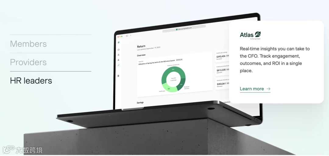 在运营层面,Spring Health通过自研技术深度嵌入服务方与雇主流程:Compass电子病历系统专为心理健康设计,集成AI驱动的临床决策支持,帮助治疗师实时掌握症状趋势与依从性数据,减少文书负担;面向雇主与保险方的SpringWorks™分析平台,则提供权益使用率、临床成效、缺勤离职率等实时指标,并结合精算模型评估成本走势与ROI,助力HR与福利负责人将心理健康从“软福利”升级为可量化的人力资本投资模块。