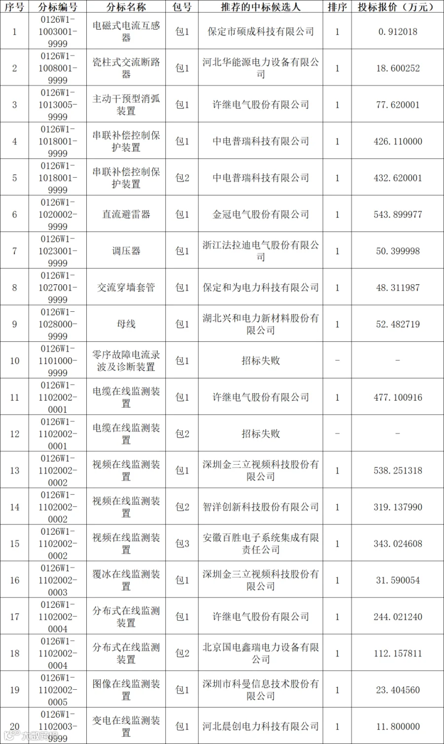 国网冀北电力有限公司2026年第一次物资公开招标采购项目(招标编号:JB26-HW-ZB01-0126W1)评标工作已经结束。现将评标委员会推荐的中标候选人公示如下: