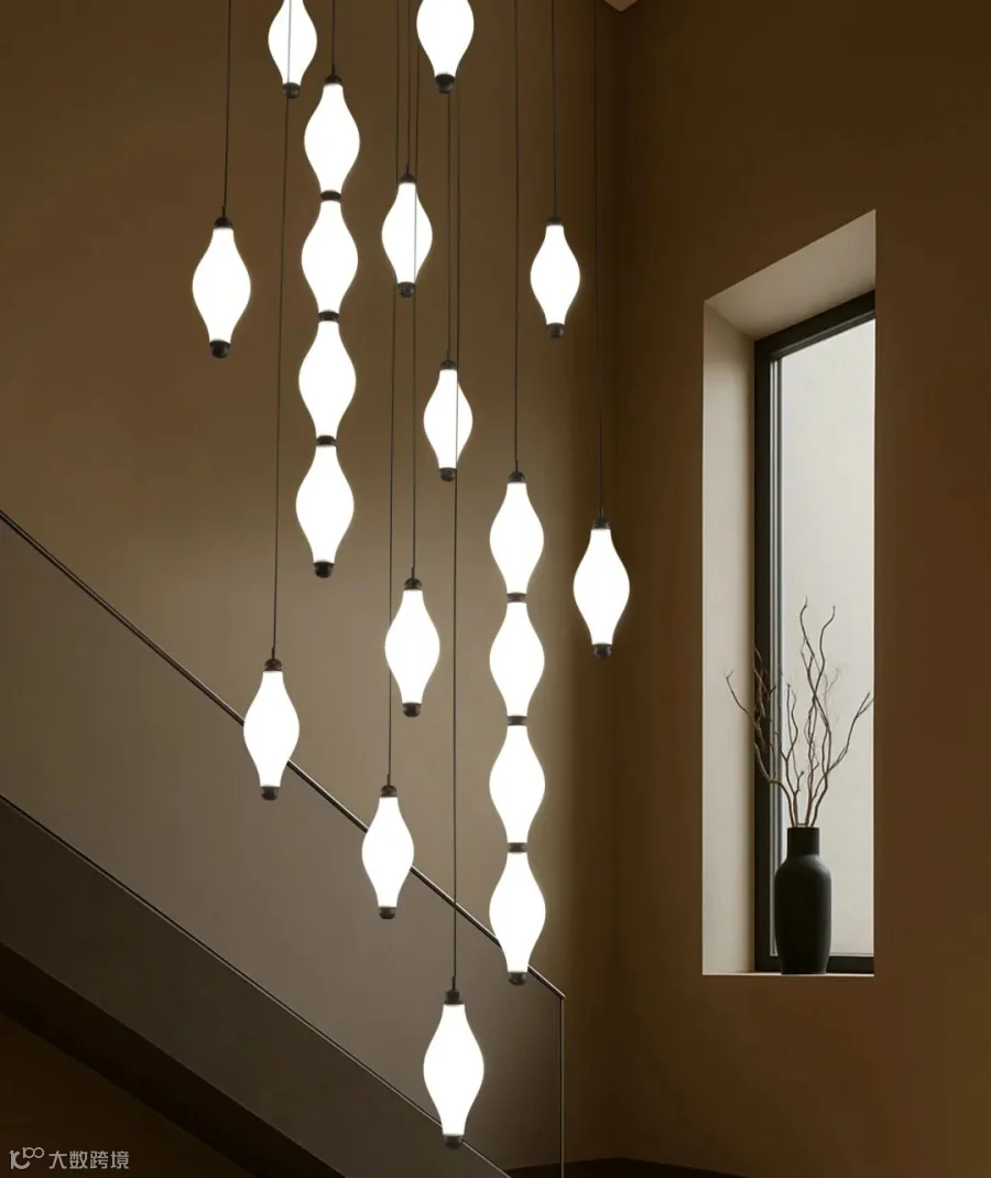 这组灯具正捕捉了那份精髓:柔和而流畅的造型,错落交织的不对称之美,仿佛异域植物的低语回响。它是对南方阳光的微妙致敬,将和谐与奇妙注入日常空间,让生活在光影中律动。