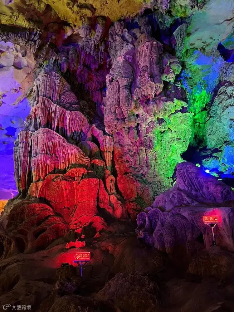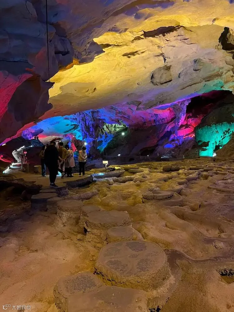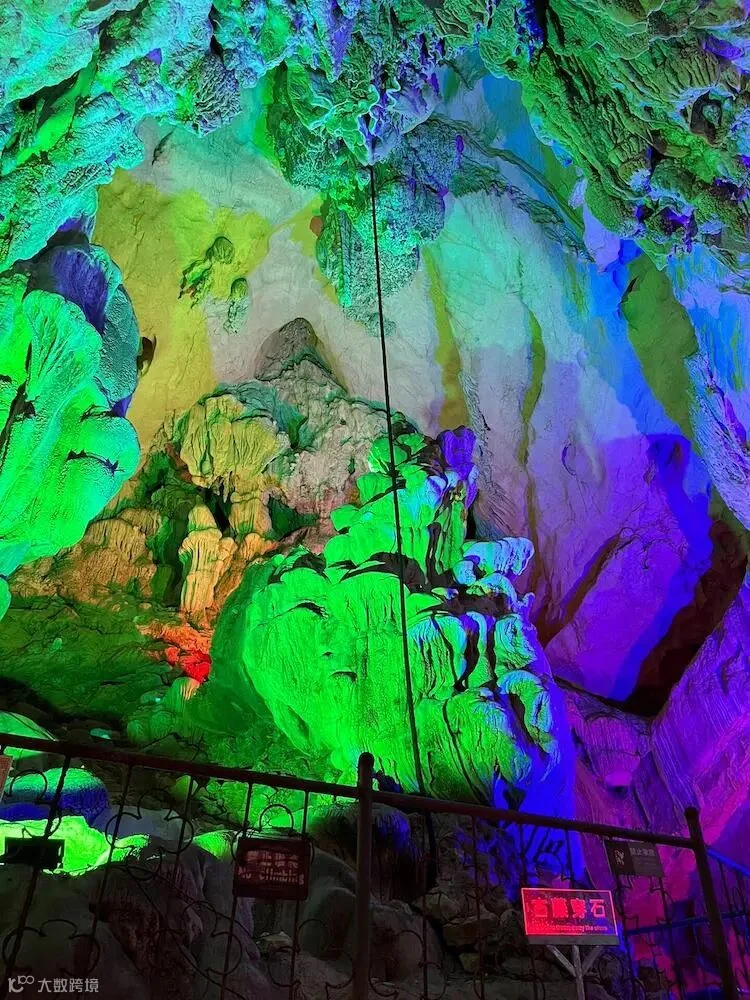 九龙洞是一座水旱兼具的石灰岩溶洞,洞长660米,宽40—60米,九龙洞分为三个支洞,左洞中洞和右洞像梯田一样高低错落。洞内乳石形态万千,以“龙、藤、沙、池”为洞内四大奇观。