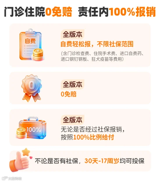 不限社保范围,0免赔,无论是否用社保,100%赔付。