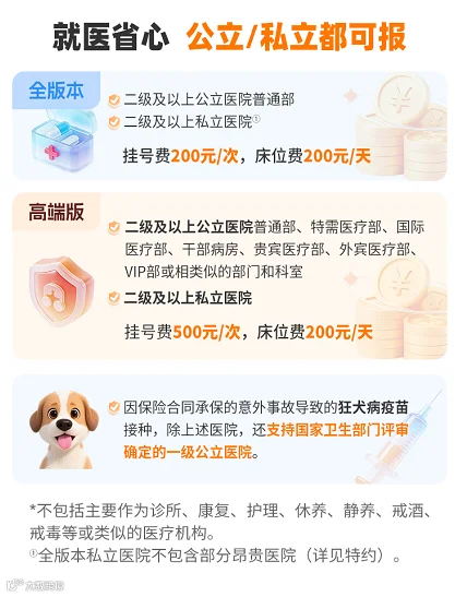 二级及以上公立/ 私立普通部随便去,门诊住院0免赔;