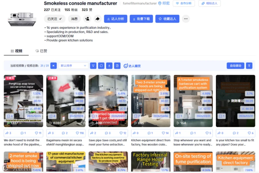 核心逻辑: 油烟机属高介入度产品,买家重视效果。视频直观展示吸力——TikTok“吸住铁锅”类视频效果远超参数手册。