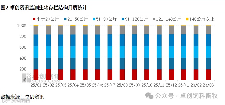 4月以来仔猪价格结束下行趋势,部分地区报价回升。4月10日7公斤仔猪均价196.61元/头,创近三年新低后企稳反弹。市场情绪修复源于两方面:前期价格超跌抑制继续下行空间,91-120公斤标猪占比提升至21.74%带动补栏需求释放。