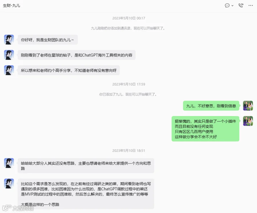 分享之后,有很多圈友也对ChatGPT编程感到震撼,不少还加我好友沟通交流。随后,我把分享稿整理成一篇文章发布到生财有术: