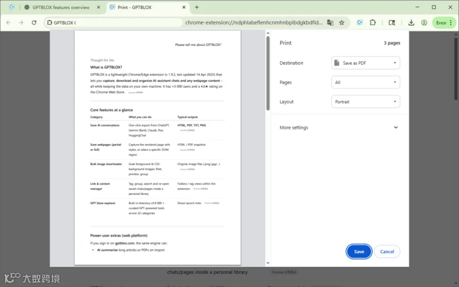 经过十几天奋战,终于开发并上线我的第一个出海产品,实现把ChatGPT对话记录以HTML、TXT、PNG和PDF多种文件格式保存到电脑本地,不需要分享或者保存在线上而担心对话记录泄露,同时,还让ChatGPT实现一个WordPress插件API给Chrome插件加载远程站点的指定的文章列表。