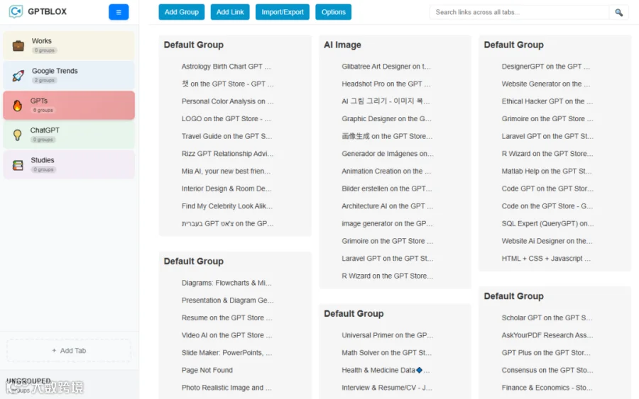 最后是汇集管理网页。这个功能是我自己目前每天都在使用的功能,是模仿OneTab开发的,也是前面提到通过ChatGPT编写出来的第一个产品的功能,但我根据自己的需求做了许多优化,实现浏览器网页标签一键汇集或一键打开,还实现对汇集的网页进行分组和分页管理,还能灵活复制、剪切、拖拽移动等。