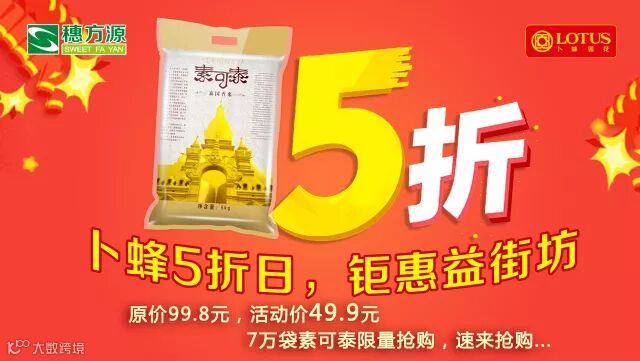 新春将至,广东穗方源在卜蜂莲花给大家一次感受泰国新米原粮的机会,它们漂洋过海,终于赶上了2018年的第一次5折日活动,与大家见面啦!