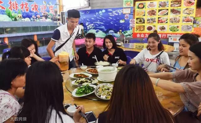 坐了一上午的大巴,大家都还没换装备就喊着吃饭,小伙伴们饿坏了吧!去了海边怎么可以不吃海鲜呢。