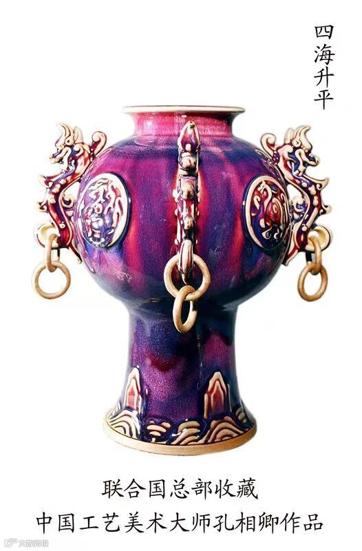 “烧制钧瓷的温度最高要达到1300度,在高温烧制过程中,钧釉中的铜元素在不同高温阶段的特定‘气氛’中,经过几轮的氧化-还原,最终形成不同的色彩。”孔相卿说,钧瓷在高温烧制‘窑变’过程中,除本色釉外还会变出其他颜色,因为其釉色是烧制过程中自然形成,非人工描绘,每一件钧瓷的釉色都是唯一的,故有“钧瓷无双”的说法。
