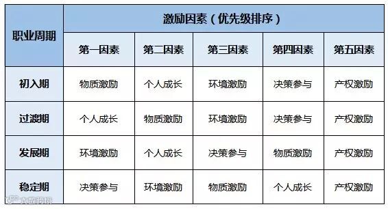 针对每个企业,每种类型的行业,其职业周期与上述标准描述的符合程度有所差异,在进行激励政策的制定时,应根据调研结果,制定不同的激励因素优先级。