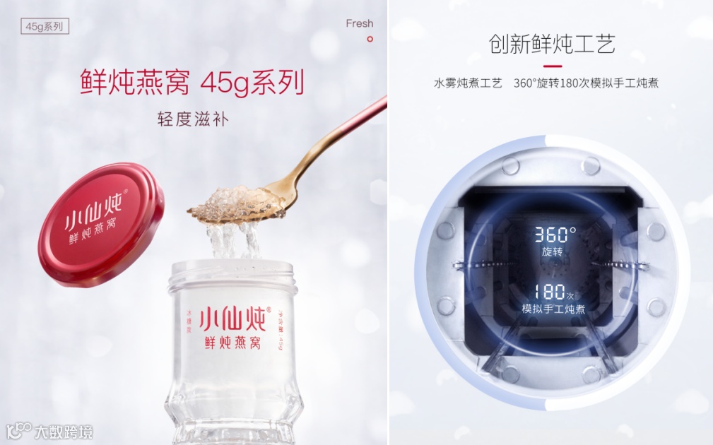 对于滋补行业,消费者最大的需求就是滋补效果和品质。中国人食用燕窝由来已久,作为名贵滋补食材,它具有滋阴润肺、益气养颜的功效。但传统的干燕窝市场鱼目混杂,必须仔细甄别选择,而后悉心炖煮,对消费者来说耗时耗力;而后出现的即食燕窝虽然开盖即食,但作为罐头,它们的保质期多超过1年,存在有添加剂风险。而小仙炖推出的鲜炖燕窝,采用鲜炖工艺专利技术,下单鲜炖,配料只有燕窝、冰糖和纯净水,保质15天,每周冷鲜配送到家,有效保留燕窝营养,一次性解决了当下的用户对于新鲜、营养、健康、便捷的多元需求,创新性地开启了燕窝品类新时代。据欧睿国际数据显示,2017-2019年小仙炖已连续三年鲜炖燕窝全国销量第一。