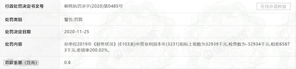 在“信用中国”网站显示的处罚决定中,朝阳区统计局给“小仙炖”开出的罚单内容是:
