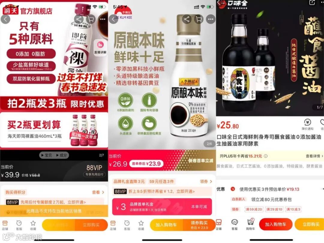 以单一调味品,中国“酱油第一股”海天为例,去年11月,其上线一款高端“裸酱油”,主打即简配方,强调配料中仅有水、非转基因黄豆、小麦、食用盐、白砂糖5种原料,此外,包装采用了双层技术的“留鲜瓶”,据称能够防止酱油氧化、保持口感。
