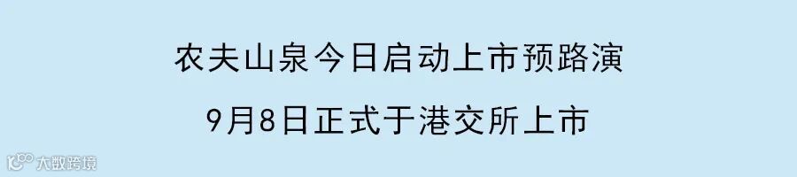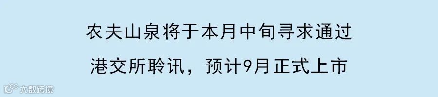 今年4月29日,农夫山泉正式向港交所递交招股说明书,并于8月16日递交通过聆讯后的招股说明书。