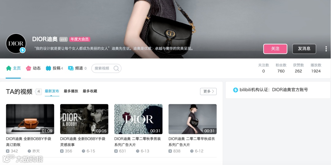 6月份,Dior也正式入驻了B站,成为首个在B站拥有官方社交账号的奢侈品品牌,在B站有关Dior口号种草和测评的视频也很多。