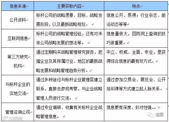 可以从多个渠道获得这些战略管理信息,如下表所示: