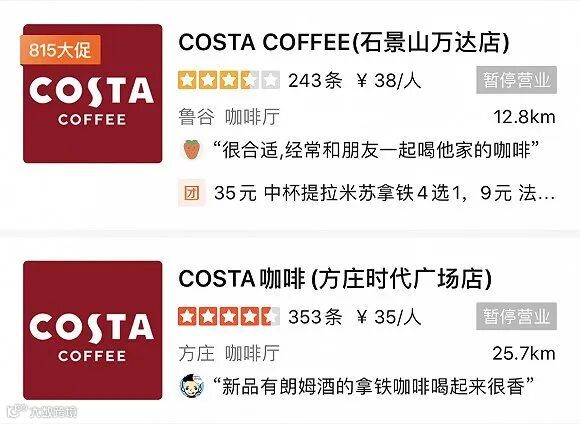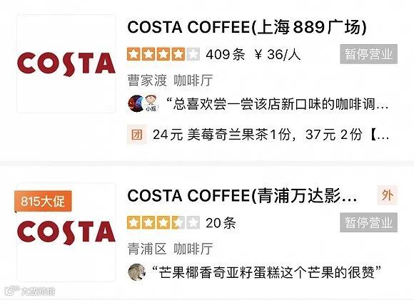 不少由于疫情临时关闭的餐饮连锁门店真的就没再回来,比如COSTA咖啡。