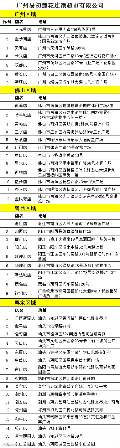 在华南44家卜蜂莲花门店