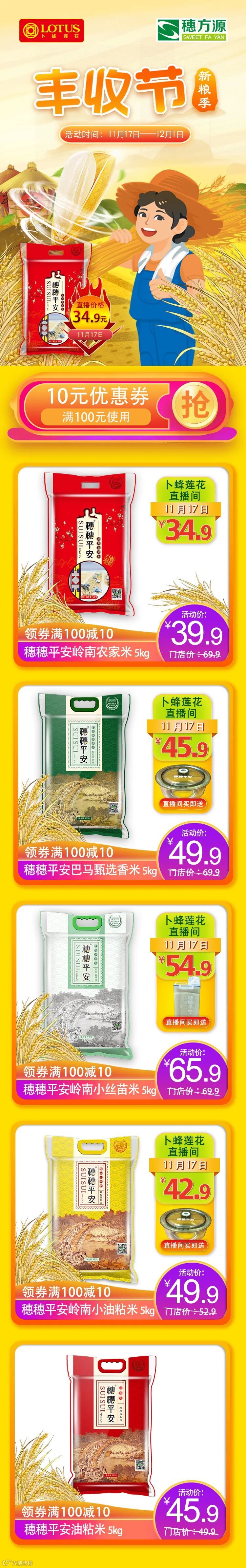11月18日-12月1日,穗方源大米与卜蜂莲花超市,打造"丰收节,新粮季",新米抢“鲜”上市,从稻田到餐桌,品尝来自岭南水土的一口鲜甜。