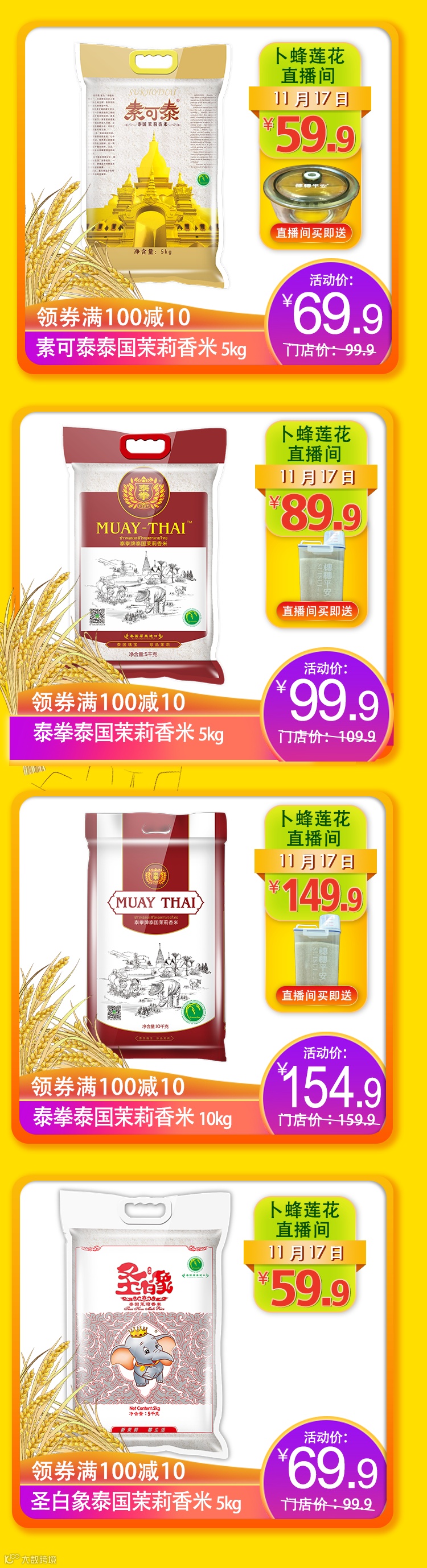 直播期间,满100减10元