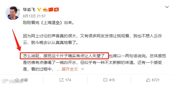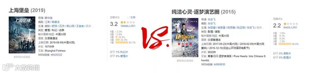 然而影片一开画立即遭到了人民群众的无情嘲讽,影片从原来的4.8的分数掉到3.6,然后落到3.2,直逼华语烂片之王《逐梦演艺圈》。有意思的是,《逐梦演艺圈》的导演毕志飞还发微博表示对《上海堡垒》“失望”——这可能是观众对毕志飞唯一一次肃然起敬的时候。