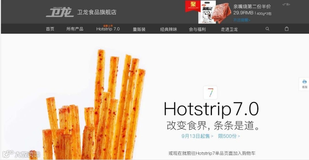 2016年9月7日,卫龙抢在苹果发布iPhone 7的前一天,将天猫旗舰店的风格改成了妥妥的苹果风。
