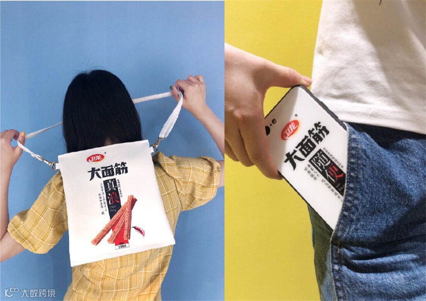 2019年,卫龙一口气出了15款周边,耳环/背包/雨伞/手机壳/抱枕/四件套……可谓是跨界营销的动作,延伸到了各个领域。