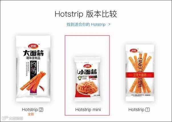 同时推出“辣条7”,起名Hotstrip 7.0,配上“改变食界,条条是道”的文案,从产品包装和宣传文案上成功博得大众眼球。