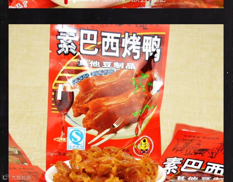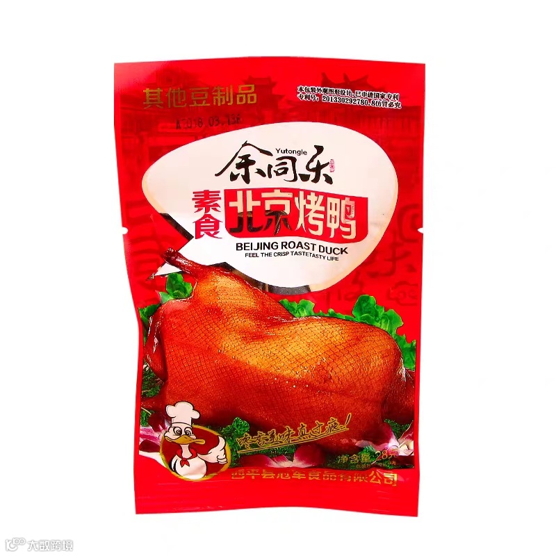 比如北京烤鸭、素巴西烤鸭、肥牛,乍一看全是人们吃过的美食,封面上仅供参考的图案也是色泽诱人,但大多都有“挂羊头卖狗肉”嫌疑,包装上的那行小字“豆制品”才是主角。