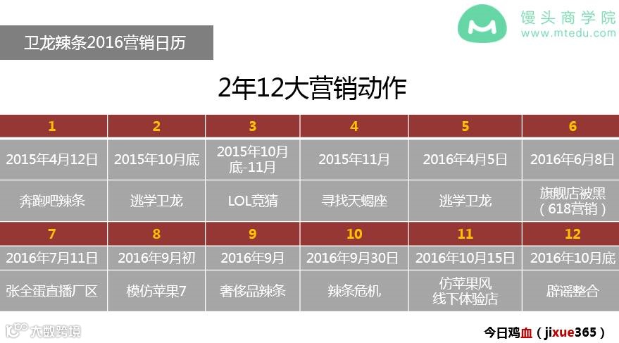 巧妙的时间点,让卫龙初尝网络营销的“甜头”。随后,卫龙相继入驻社交、电商平台,走上了蹭热点的“不归路”。尤其是2015-2016年,卫龙开展了一系列密集的热点营销:
