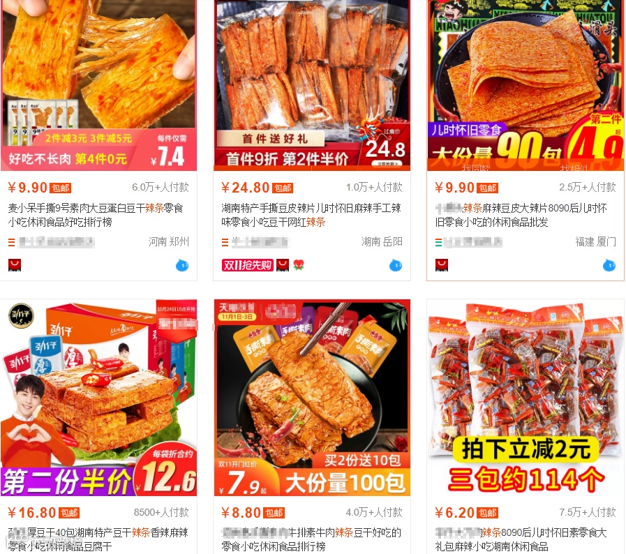 最后是以假乱真派。用家喻户晓的食物名称给辣条命名,产品包装上也在弱化辣条的存在感。
