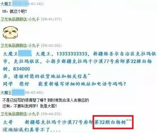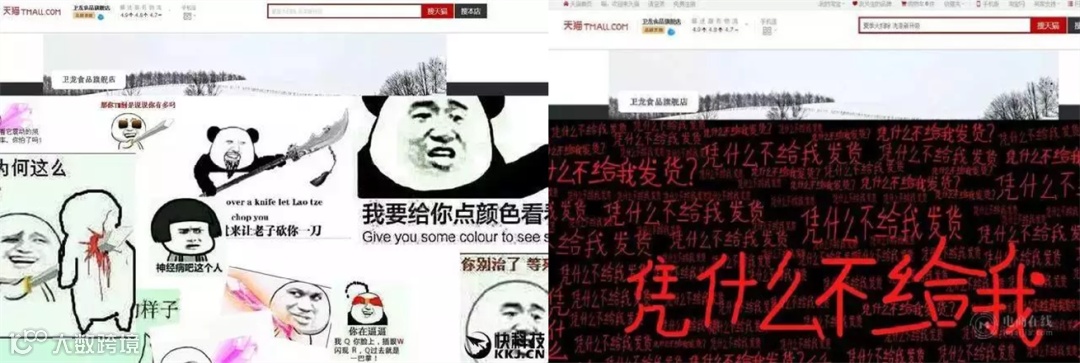 2016年6月8日,卫龙的天猫旗舰店被黑。当天有网友发现,卫龙旗舰店的首页充斥着表情包,以及“你为何这么叼”的字样。起因是一位“程序员”买家将收货地址定为“新疆沙漠第 32 棵白杨树”,由于地址特殊不能发货而导致店铺被黑。