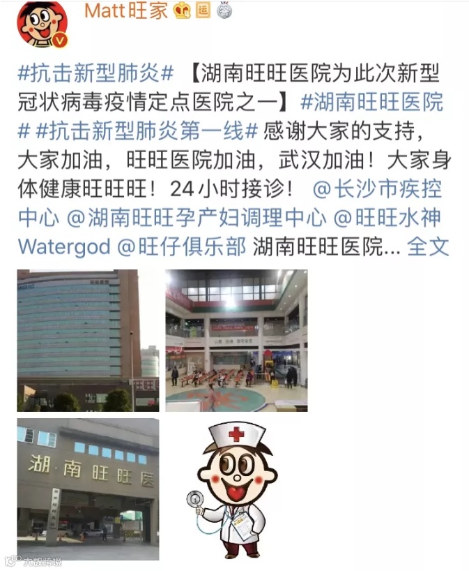 疫情期间,湖南旺旺医院还成为了新冠病毒疫情定点医院之一,并派遣了专业医疗团队驰援武汉。