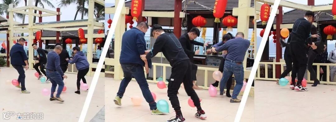 第二个游戏,双方踩气球,全部踩爆对方气球的胜出。这个游戏充分表述了张牙舞爪的含义。