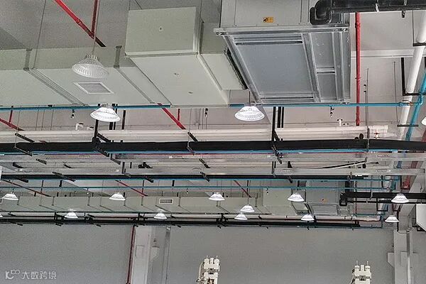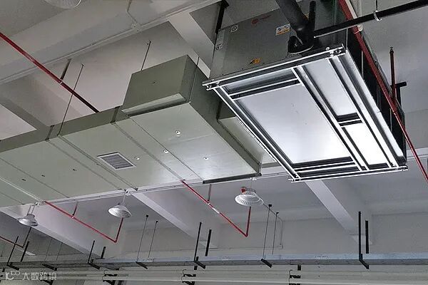 ①吊装中央空调室内机,并对内机进行包裹,避免有灰尘杂质进入;