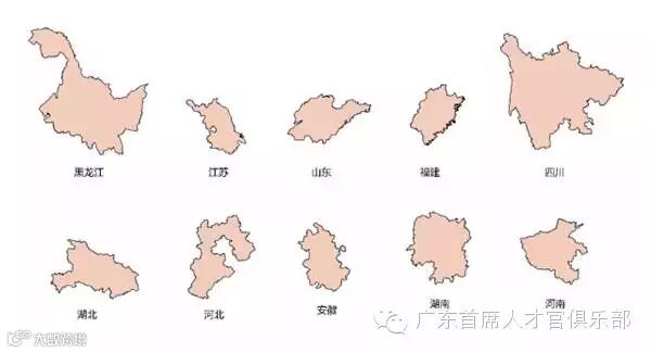 第二步,综合这三个城市的外来人口来源地的比例分布,计算后选择了前十名的省份,确定为“北上广”的劳动力补给省,请看下图: