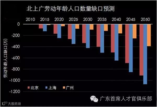 假如,北京、上海、广州三个一线城市的劳动力总量(比例就不提了,结果不敢拿出来给大家看)在2050年时仍然能够维持2010年的水平。