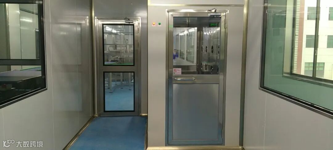 ② 口罩原材料经过风淋除尘缓冲再进入加工车间