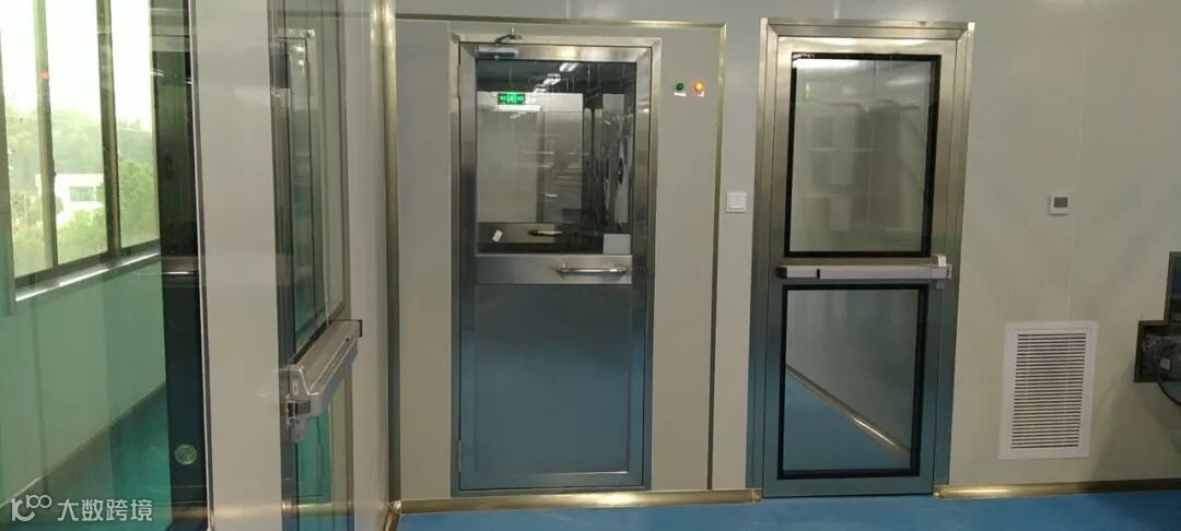 工作人员进入生产车间 ,需要佩戴口罩、一次性手套,穿上简易防护服和鞋套,还需要经过专门的“除尘”工序。每个人需要单独经过风淋消毒空间,进入这个空间后,会吹入全方位的气流,将附着在身体和衣服表面的灰尘吹走。