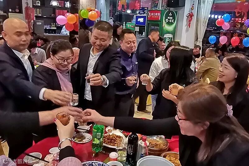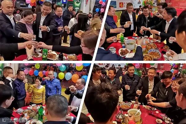 伍董祝酒之后,美味可口的饭菜相继呈上桌来。觥筹交错之间,大家把酒言欢,互相敬酒,传递着浓浓的同事情。