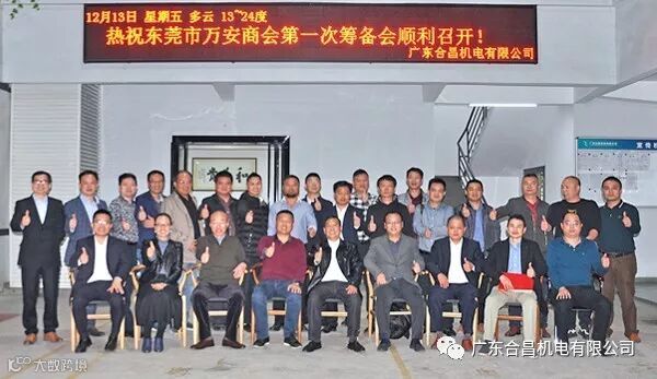 2019年12月13日下午,东莞市万安商会第一次筹备会在广东合昌机电有限公司会议室隆重召开。应邀出席参加会议的有万安工商联朱主席,傅主席,杨主任及在莞企业家等28人。