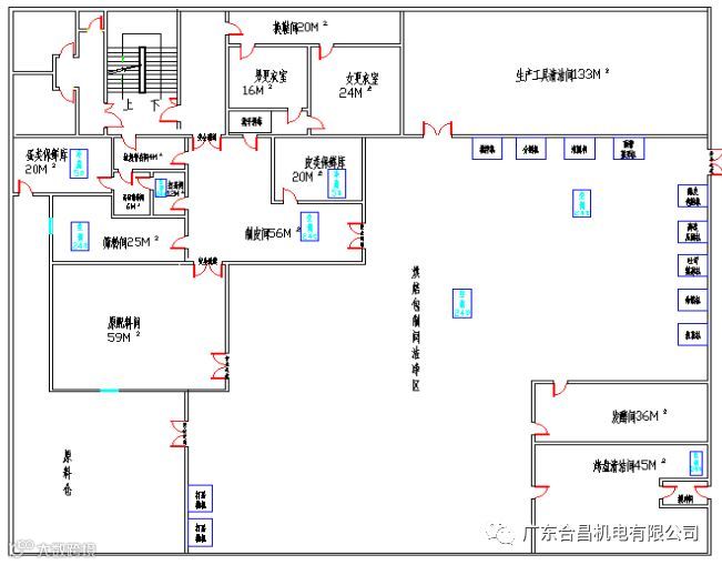 2.食品包装无尘车间内的空气是从洁净区向洁净程度差的区域流动,受污染空气的流动达到最低程度,空气在门口处和室内建筑中的流动方向正确。