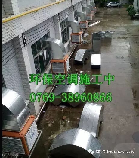 惠州某模具设备厂的吴经理找到东莞市合昌机电有限公司,提出让我们设计一套最合适的降温方案,通过对该工厂的实地考察,采用环保空调通过主机往车间送风,再把车间热气带出,外循环的方式降温,从而达到一个通风、换气、除尘的效果,以保证人员所需的舒适环境,而且含氧量高,让工厂员工不易疲劳。