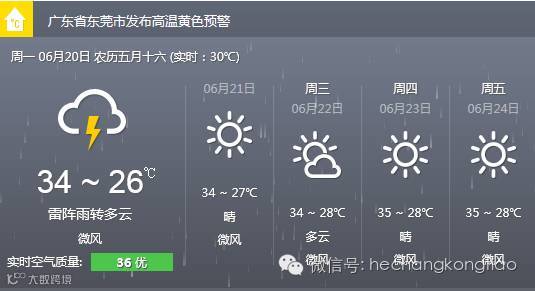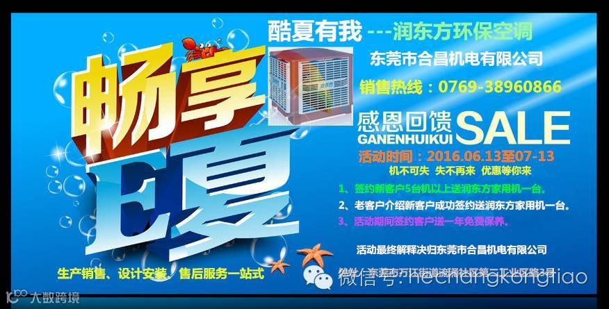 广东合昌机电有限公司根据最近一周天气预报,每天平均高温35度,时值酷夏,热、闷、空气不流通影响你的心情,影响员工工作热情,合昌润东方环保空调帮你解决,16年致力于将酷夏打入“冷宫”。