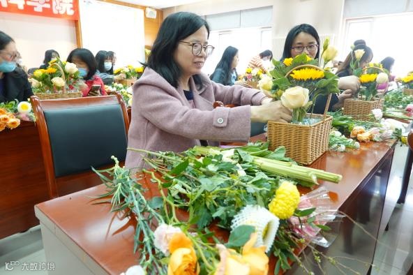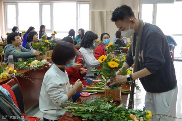 从鲜花的取材、剪叶、构图、布局开始,不断地尝试和实践,在相互交流中,一篮篮错落有致、生机盎然、创意十足的插花作品展现在众人眼前。