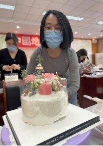 每个人的小蛋糕都充满特色,高的矮的都有,有的蛋糕上铺满奶油,有的蛋糕上用鲜花做造型,还有把草莓、芒果、蓝莓和马卡龙等装饰摆在蛋糕上......大家在自己的蛋糕胚上挥洒着自己的创意,现场弥漫着浓郁的奶油香味和幸福快乐的味道。
