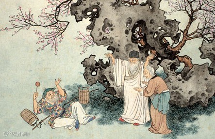 老莱子,春秋时期楚国隐士,为躲避世乱,自耕于蒙山南麓。他孝顺父母,尽拣美味供奉双亲,70岁尚不言老,常穿着五色彩衣,手持拨浪鼓如小孩子般戏耍,以博父母开怀。一次为双亲送水,进屋时跌了一跤,他怕父母伤心,索性躺在地上学小孩子哭,二老大笑。
